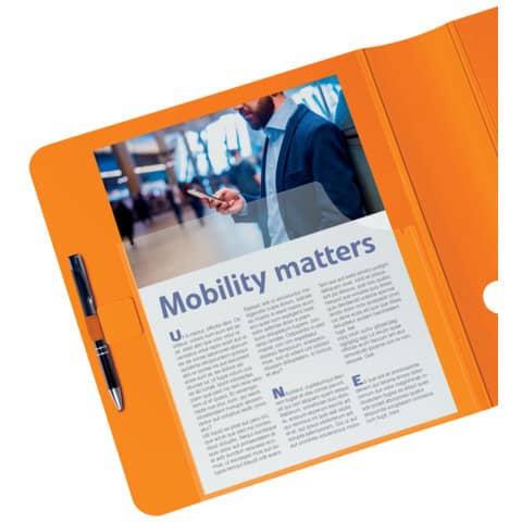 • Am Vorderdeckel mit Innentasche für lose Papierablage