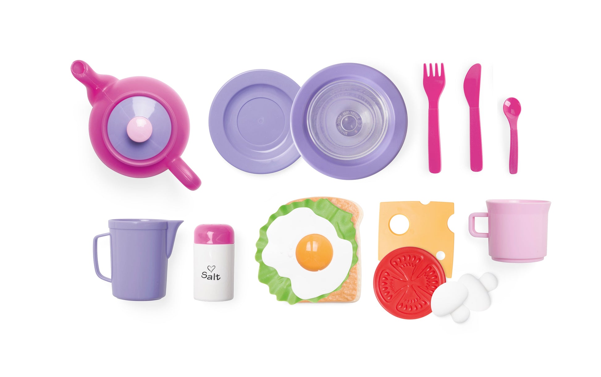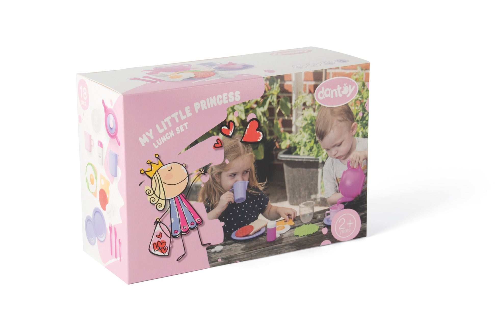 Dieses hübsche Lunch-Set von For My Little Princess enthält unter anderem Brot, Ei und Salat für ein leckeres Mittagessen. Die Familie kann zu einer Pause eingeladen werden, um den größten Hunger gestillt zu bekommen. Das Lunch-Set ist sowohl für das Spielen drinnen als auch draußen geeignet. Dieses Set kann hervorragend mit anderen Sets von For My Little Princess erweitert werden. Kombinieren Sie das Lunch-Set mit dem Frühstücks- oder Tee-Set, sodass noch mehr Menschen Essen und Trinken angeboten werden kann. For My Little Princess lädt Jungen und Mädchen zum Spielen in einer wunderschönen, farbenfrohen Welt aus Lila- und Rosatönen ein. Dieses Universum bietet reichlich Möglichkeiten für fantasievolle Rollenspiele mit Utensilien wie Essen, Tee und Kuchen. Bei diesem Lunch-Set handelt es sich um ein in Dänemark produziertes Spielzeug von dantoy, das aus Kunststoff hergestellt wird, welches das Nordic-Ecolabel trägt. Das Set besteht aus 18 Teilen in den schönen Farben von For My Little Princess. Die empfohlene Altersgruppe für dieses Produkt ist 2+ Jahre.