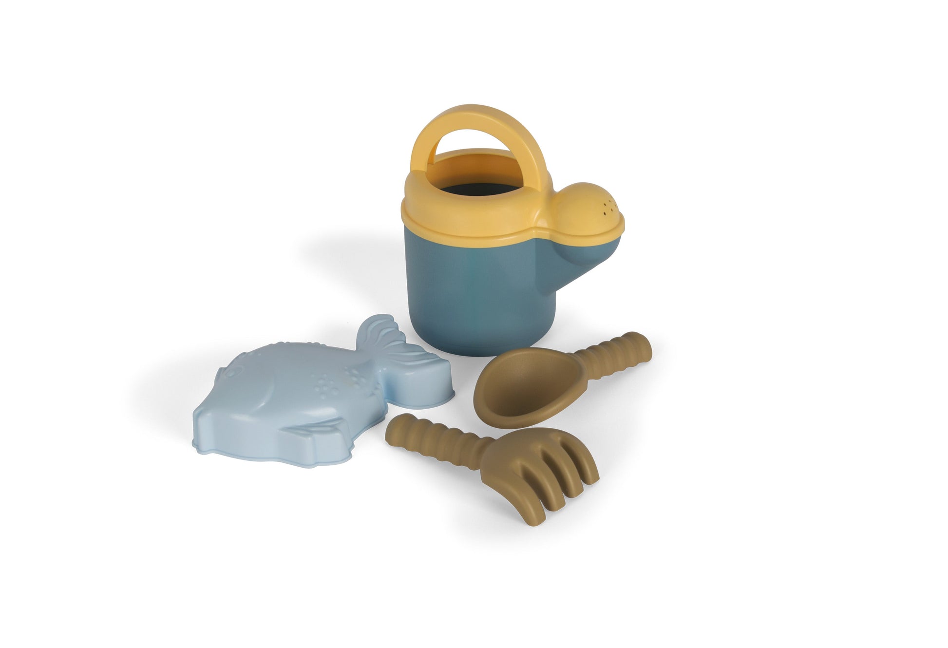 Ein schönes Set bestehend aus Gießkanne, Sandform, Schaufel und Rechen. Das Set eignet sich ideal für unterhaltsamen und lehrreichen Spielspaß am Strand oder im Sandkasten, und zwar für Groß und Klein. Das Spielen mit Sand und Wasser fördert die Sinneswahrnehmung und Feinmotorik des Kindes, zum Beispiel beim Befüllen und Umdrehen der Sandform. Das Sand- und Wasserset ist ein in Dänemark hergestelltes Spielzeug von dantoy aus Biokunststoff, das in zwei verschiedenen Set-Ausführungen in den BIO-Farbkombinationen erhältlich ist. Die empfohlene Altersgruppe für dieses Produkt ist 2+ Jahre.