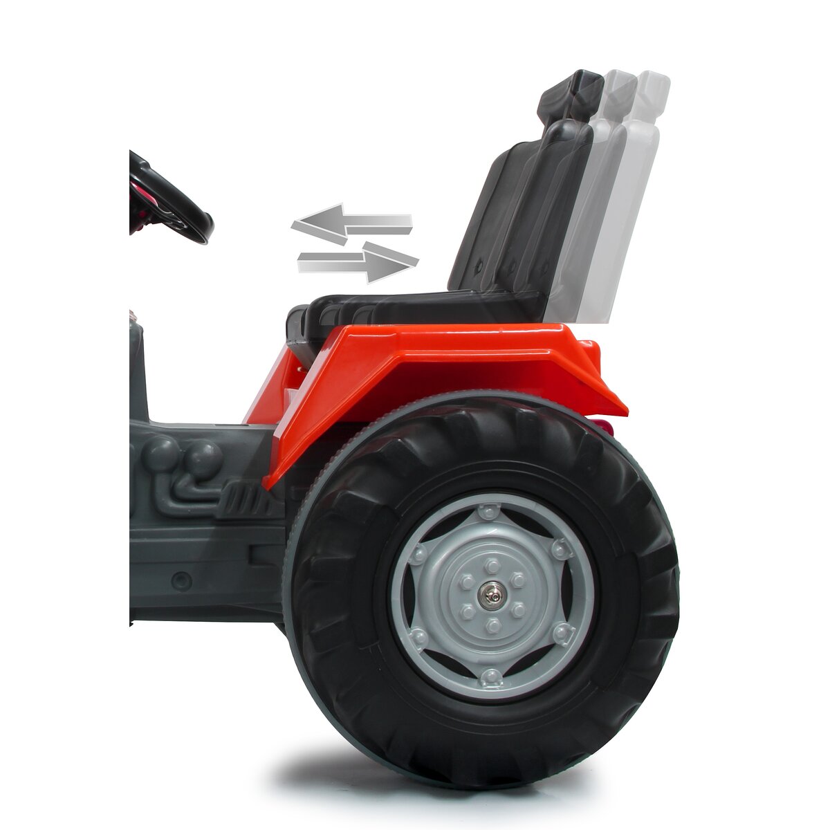 Der 12V Traktor „Power Drag“ von JAMARA ist da! Gleich zwei leistungsstarke Antriebsmotoren und ein kraftvoller 12 Volt Akku sorgen für eine lange Fahrtzeit mit jeder Menge Power. Durch die 2-Gangschaltung kann zwischen einem langsamen und einem schnellen Tempomodus gewechselt werden. Der „Power Drag“ verfügt über einen abspielbaren Sound und ein realistisches Schlüsselsystem. Also, Zündschlüssel einstecken und Fahrzeug starten dann steht dem Fahrvergnügen nichts mehr im Wege. Der Power Drag ist in rot oder grün erhältlich und wer noch ein besonderes Highlight dazu haben möchte, kann optional auch einen Anhänger an den Traktor anhängen um kleine Lasten ganz wie in echt transportieren.